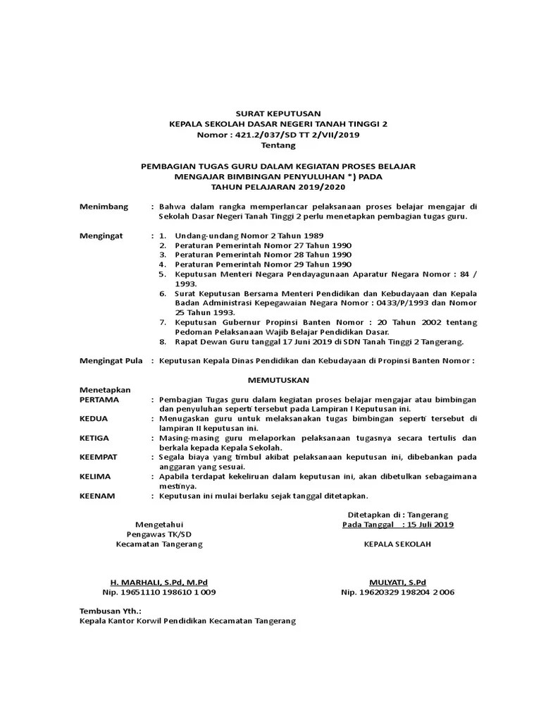 Sk Pembagian Tugas Mengajar Sd 2020 : Contoh Sk Pembagian Tugas Dan Beban Kerja Guru Berkas Edukasi : Kurikulum muatan lokal bahasa jawa pada sd/mi/sdlb, smp/mts,